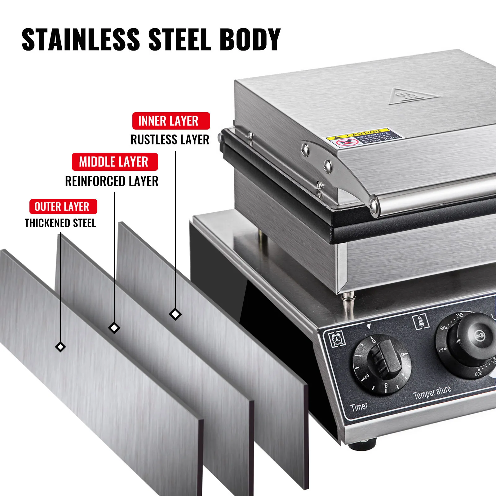 The main body of our dutch waffle maker adopts high-quality thickened stainless steel material, with an attractive appearance, offering a more reliable and durable cooking experience.