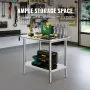 To alter the shelves' height, you must turn the screws. The VEVOR stainless steel work table can accommodate heavy objects of any weight. Its first-rate can hold up to 400 lbs, and the button rack can endure up to 300 lbs. Thus, go ahead and put weighty kitchen things, fix hardware or devices, and numerous different things on this table.