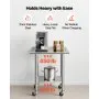 VEVOR Stainless Steel Work Table, 61x76 cm Food Prep Table with Wheels and Backsplash, Commercial Kitchen Workstation with Adjustable Undershelf, Metal Utility Worktable, for Restaurant Outdoor