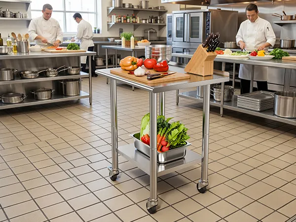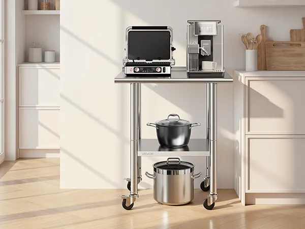 Crafted from durable stainless steel, this kitchen table provides reliable support for all kitchen tasks. Adjustable shelves, versatile storage, and robust construction make it ideal for prep, cooking, and organizing both small and large kitchens efficiently.