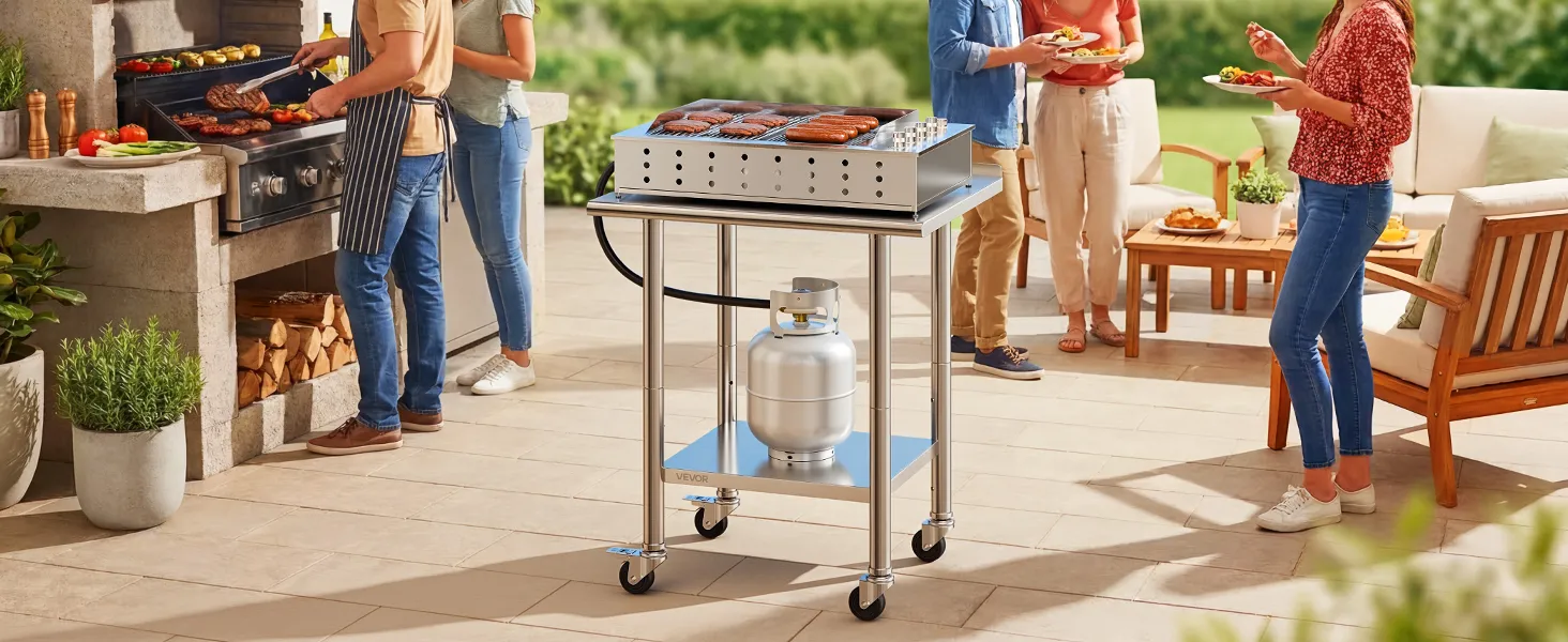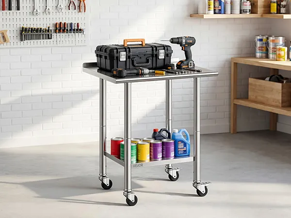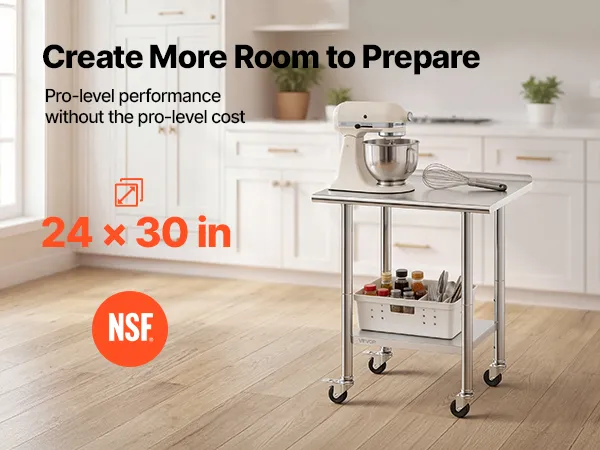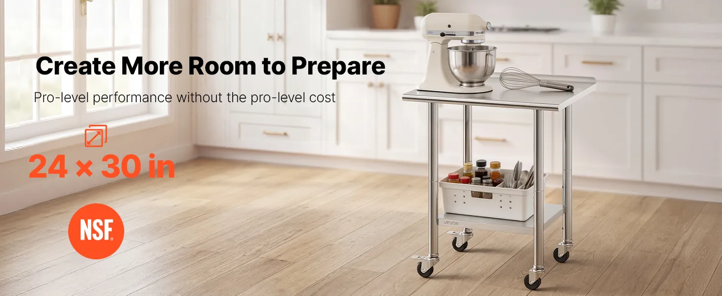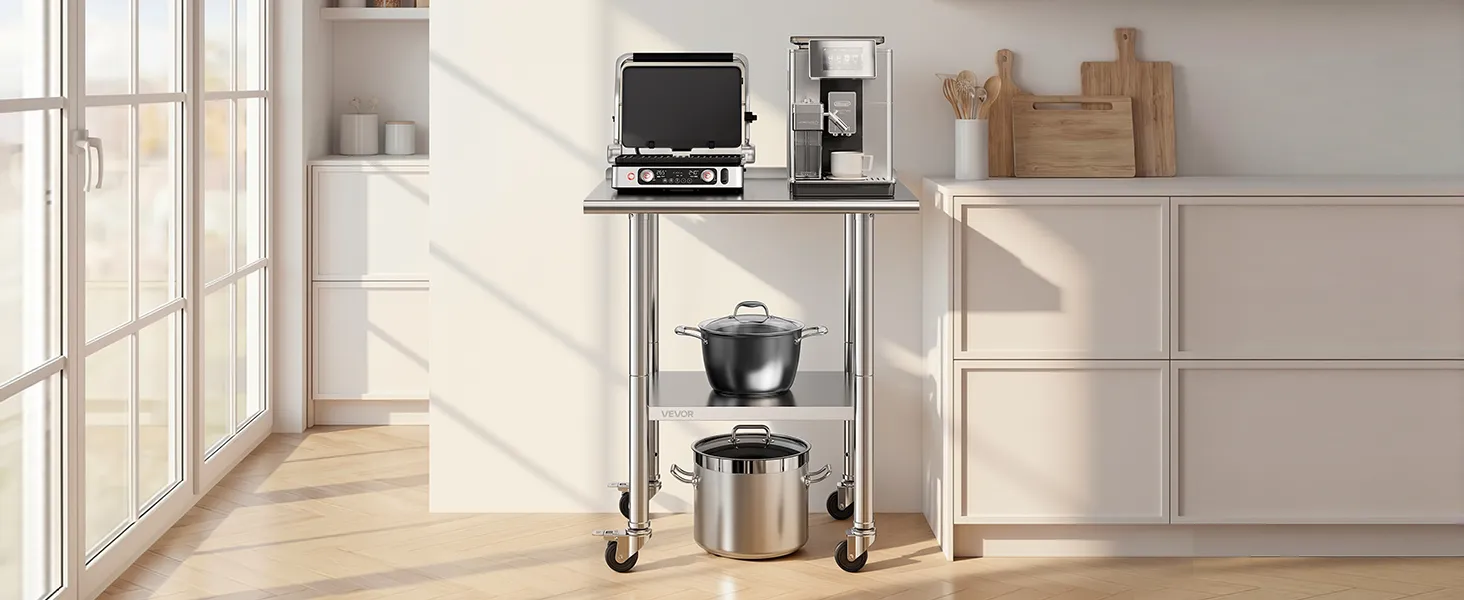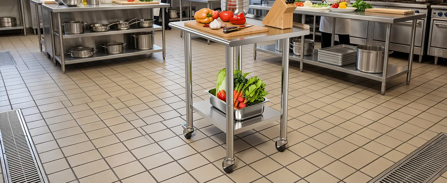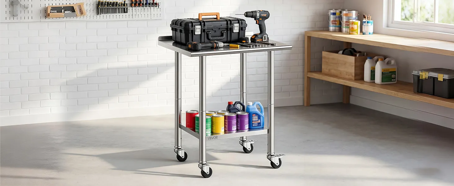 Versatile for Multiple Scenes: The prep table is ideal for home kitchens, commercial prep areas, garage workbenches, bakeries, and outdoor BBQ prep. Wheels allow flexible layout while maintaining secure heavy-duty operation