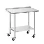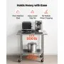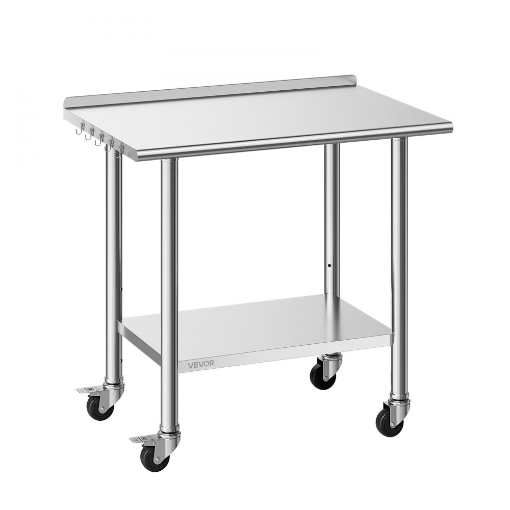 VEVOR Stainless Steel Work Table, 61x91 cm Food Prep Table with Wheels and Backsplash, Commercial Kitchen Workstation with Adjustable Undershelf, Metal Utility Worktable, for Restaurant Outdoor