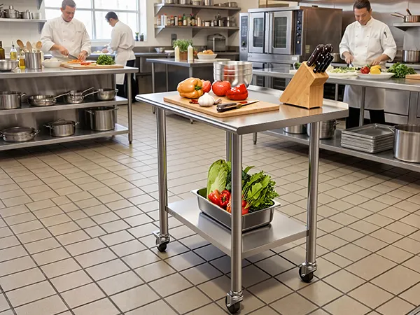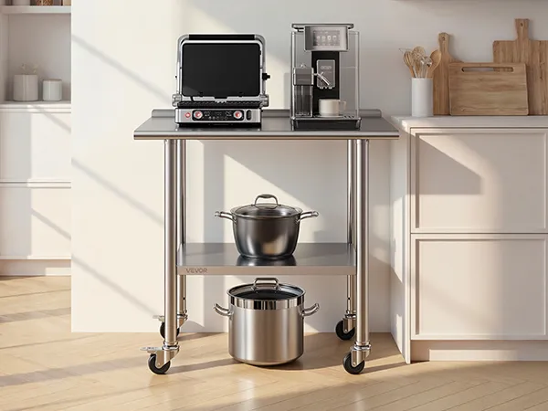 Crafted from durable stainless steel, this kitchen table provides reliable support for all kitchen tasks. Adjustable shelves, versatile storage, and robust construction make it ideal for prep, cooking, and organizing both small and large kitchens efficiently.