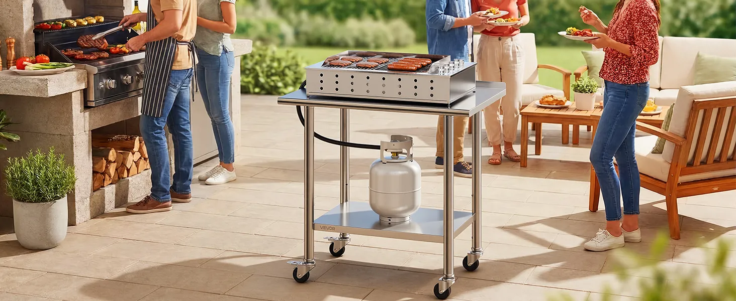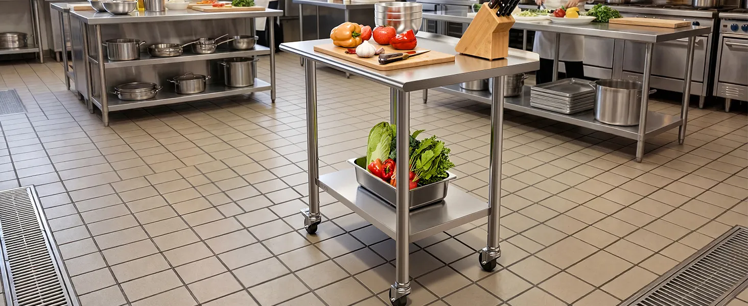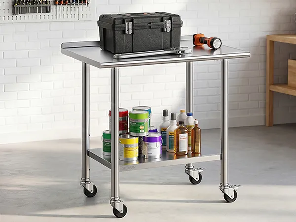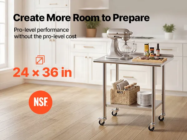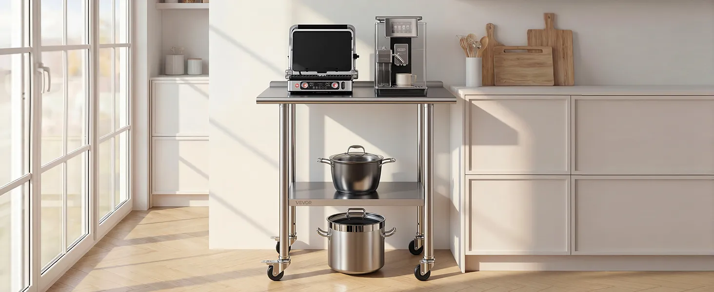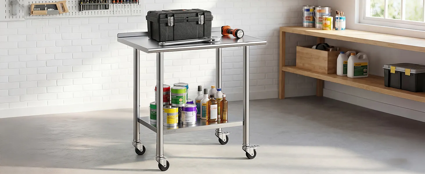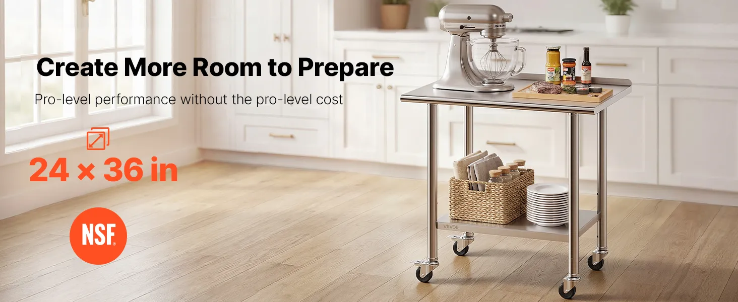 Versatile for Multiple Scenes: The prep table is ideal for home kitchens, commercial prep areas, garage workbenches, bakeries, and outdoor BBQ prep. Wheels allow flexible layout while maintaining secure heavy-duty operation