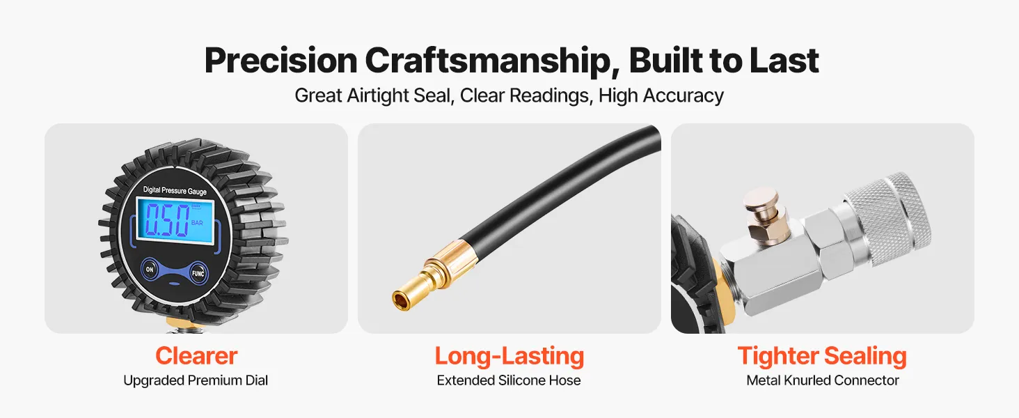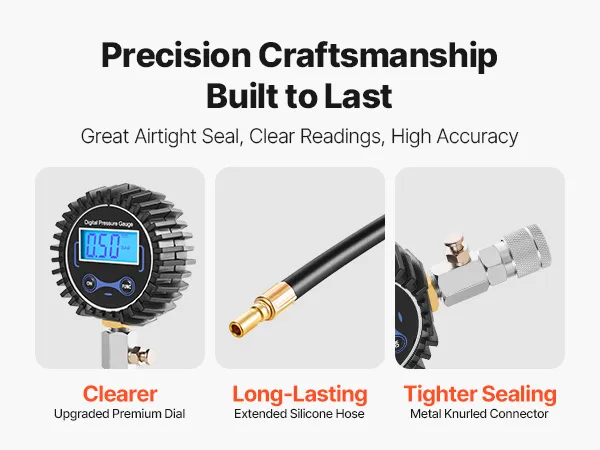Sturdy & Durable: A heat-resistant silicone hose provides strong sealing, while knurled metal fittings ensure tight, corrosion-resistant connections. Our compressor tester kit ensures long-term reliability and stable measurements