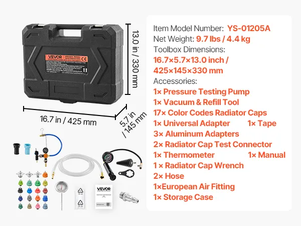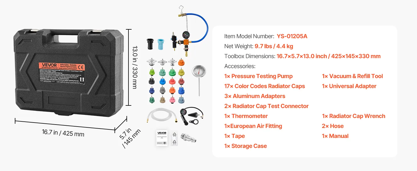 Organized & Portable Toolbox: The radiator pressure test tool kit comes with a dustproof, waterproof storage case keeps all tools neatly organized. Safety reminder: Never replace coolant when hot. Always wear goggles and gloves, and handle the system carefully to avoid hot fluid spray