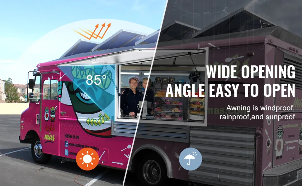 Easy to Open: With an 85° wide opening angle for an expansive view, equipped with two hydraulic rods, serving window opens effortlessly. This concession window enables you to easily serve food to customers. The included sunshade protects against rain, sunlight, and theft.