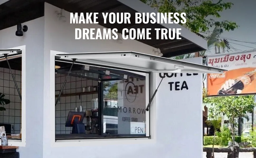Opens up to 85°, offering a broad view with ease of operation thanks to two pneumatic rods and hinges. With this concession window, you can effortlessly serve food to customers.