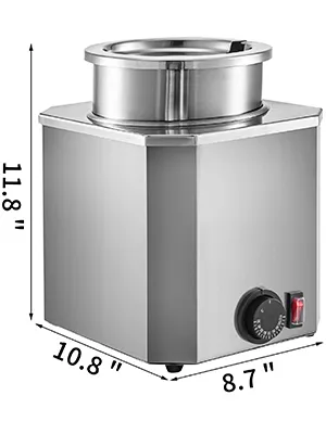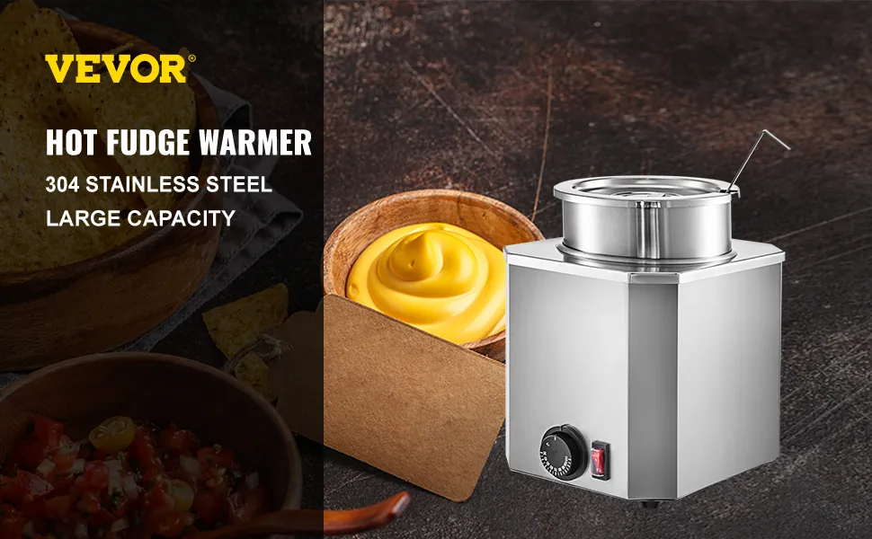 Equipped with a 3.5 L/ 3 Qt warming tank, it can hold a large amount of cheese or hot fudge at one time.