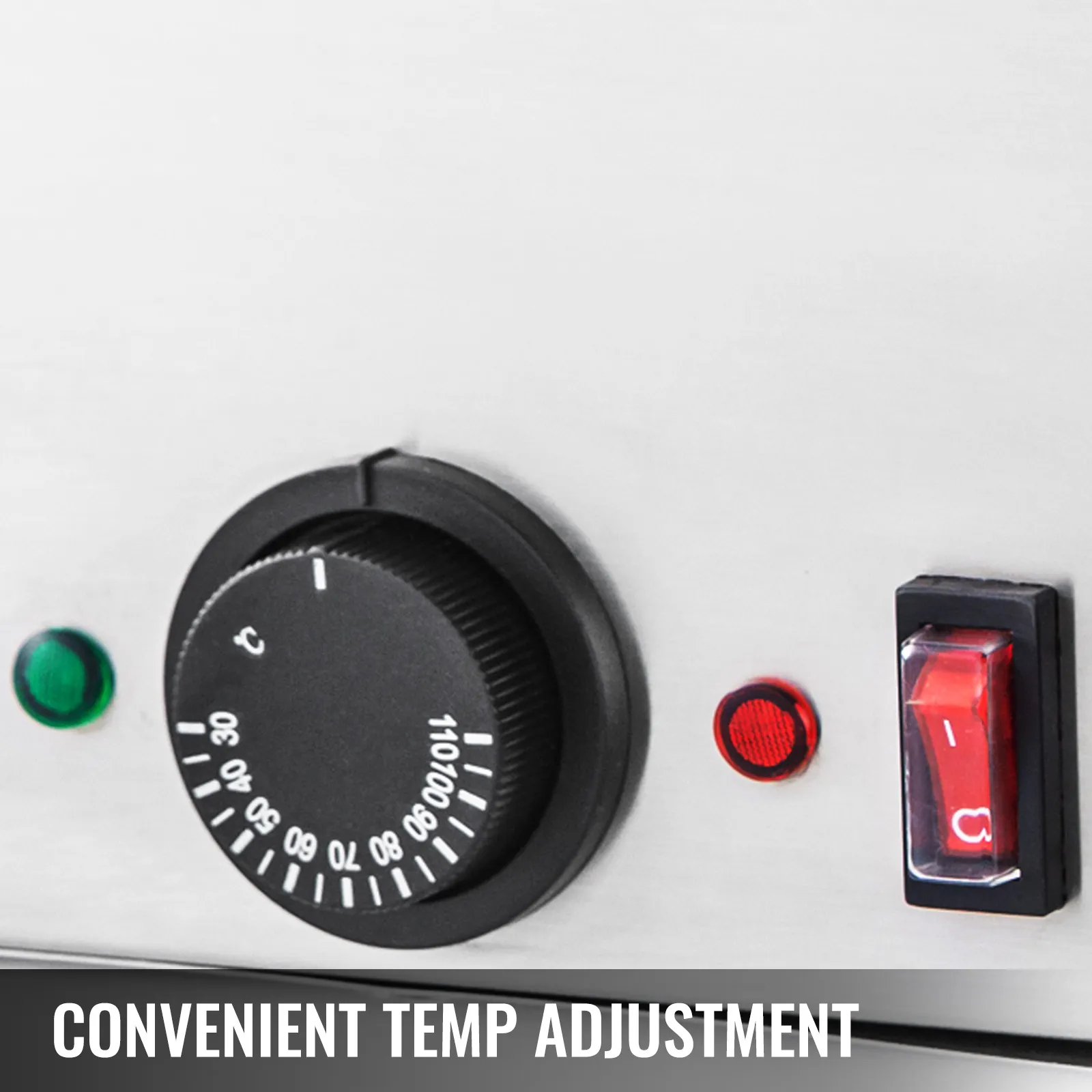 Premium hot fudge dispenser, made of food-grade stainless steel material, anti-rust, anti-corrosion, and easy cleaning; With 3.5 L/ 3 Qt large capacity, it can accept a large amount of cheese or hot fudge. Temperature 30-110℃ (86-230℉) adjustable, easy to control, and operate. This chili dispenser can be widely used in commercial food industries, such as canteens, snack bars.