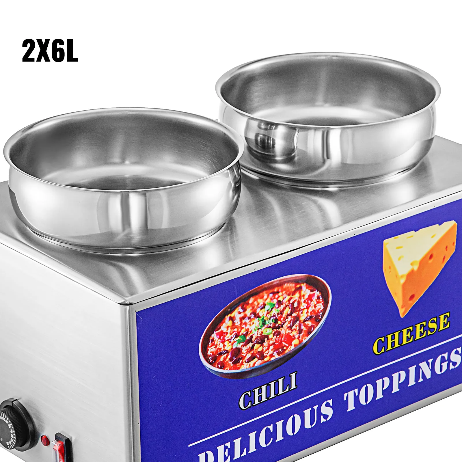 Premium hot fudge dispenser, made of food-grade stainless steel material, anti-rust, anti-corrosion, and easy cleaning; With 2 x 6 L/ 5.3 QT large capacity, it can accept a large amount of cheese or hot fudge. Temperature 30-110℃ (86-230℉) adjustable, easy to control, and operate. Eye-catching graphics will promote sales. This chili dispenser can be widely used in commercial food industries, such as canteens, snack bars.