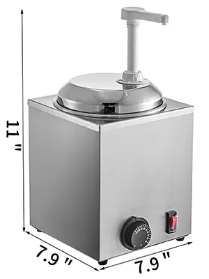 Equipped with a 2.5 L/ 2.2 Qt warming tank, it can hold a large amount of cheese or hot fudge at one time.
