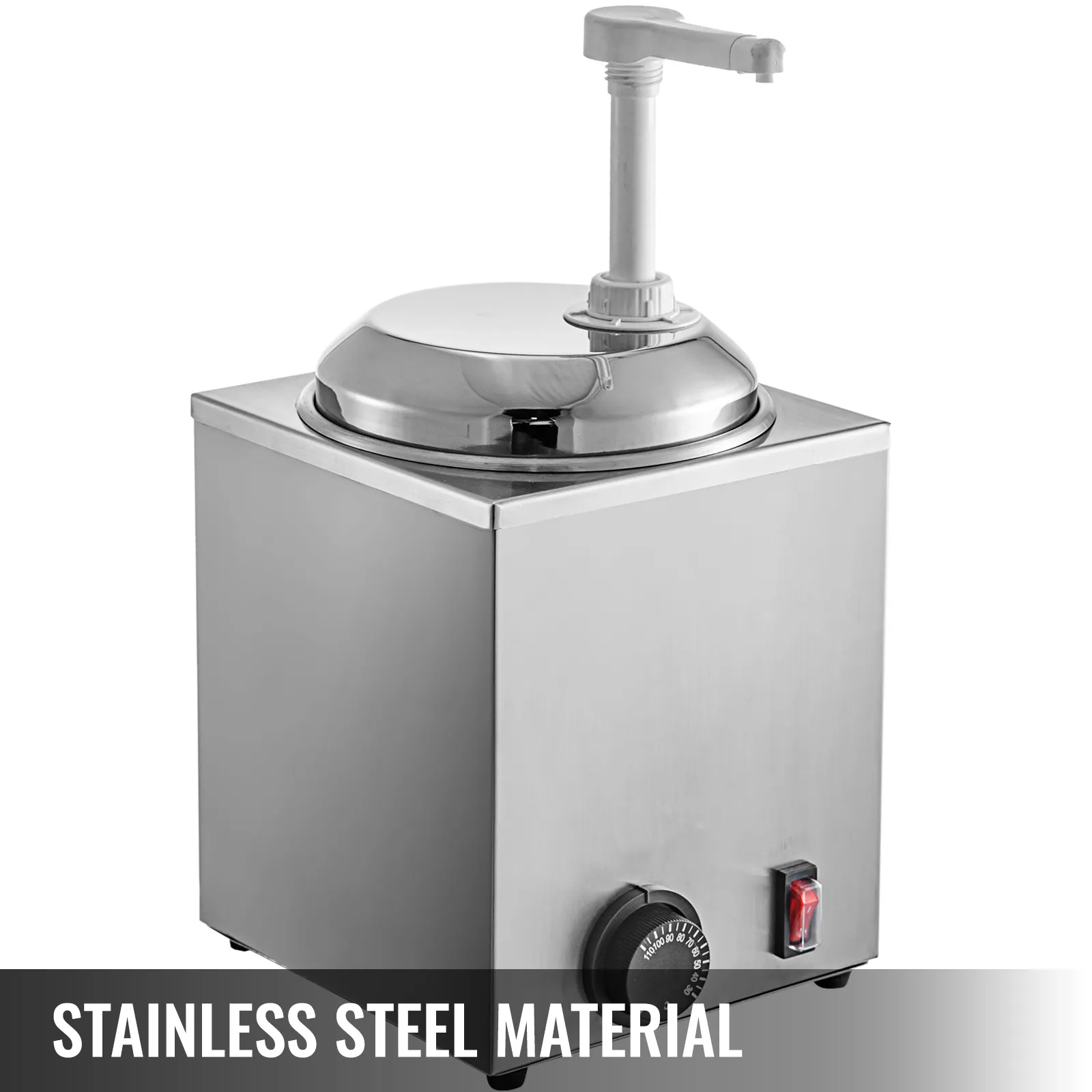 Premium hot fudge dispenser, made of food-grade stainless steel material, anti-rust, anti-corrosion, and easy cleaning; With 2.5 L/ 2.2 QT large capacity, it can accept a large amount of cheese or hot fudge. The adjustable rotary knobs can help to keep your toppings at the perfect temperature all day long, widely used in commercial food industries, such as canteens and snack bars.