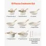 VEVOR 19 Piece Pots and Pans Set Nonstick, Granite Cookware Set, Induction Cookwares, Kitchen RV Cooking Sets with Frying, Sauce, Saute, Tempered Glass Lids, and Pan Protectors, White