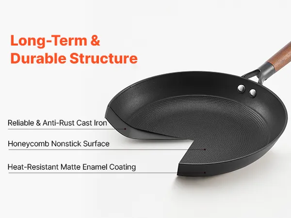 Q:Does the coating come off easily? A: Our pan is made from quality and durable materials such as cast iron, aluminum, or stainless steel. The coating has undergone repeated cooking tests and is proven to be wear-resistant and reliable. Please note the maximum heat resistance for each pan, and avoid misuse that may cause damage.
