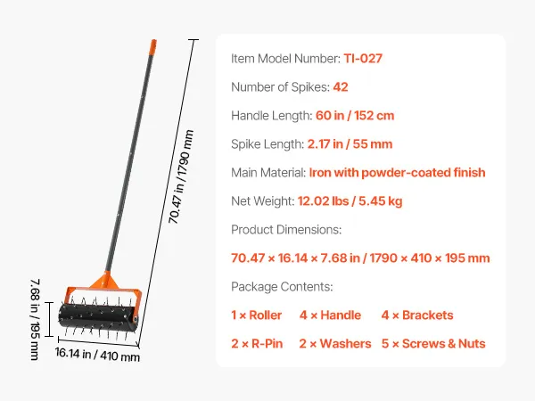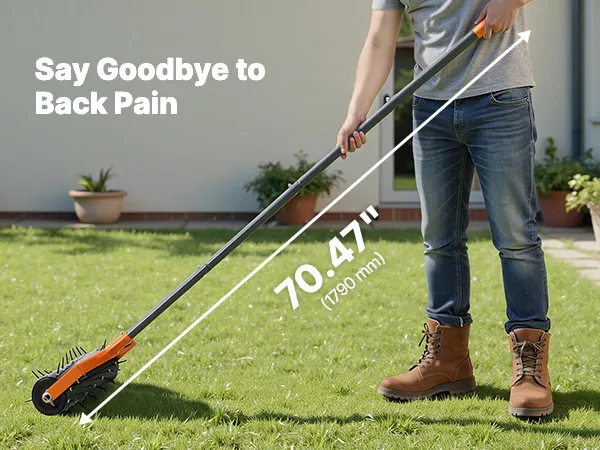 Effort-Saving & Back-Friendly: Say goodbye to back pain after gardening. The lawn aerator roller comes with a 70-inch overall height that allows you to operate in an upright position. Manual push-and-pull operation improves penetration efficiency