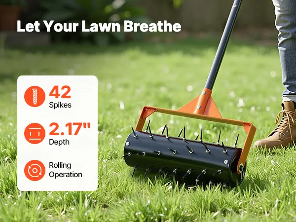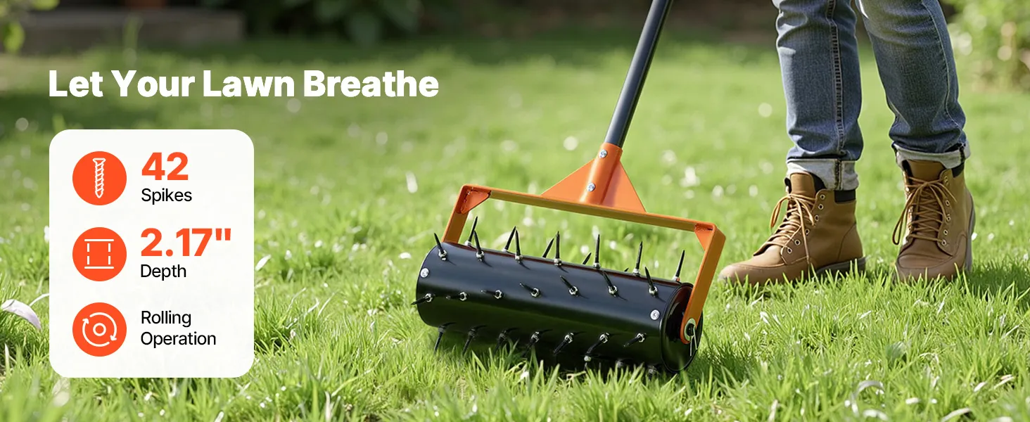 The lawn aerator roller simply roll forward and backward to penetrate the ground. The smooth rolling action lets you work tough, compacted areas repeatedly with minimal effort, ensuring deep aeration while reducing strain on your back.