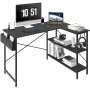 Its size, 47"x35"x29.9", fits well in small to medium spaces. The desk's structure provides enough space for monitors, laptops, or other office essentials. Mixing style and functionality makes it an indispensable part of your workspace. This design caters to both work and leisure activities. Whether you are writing, working on your computer, or gaming, this desk serves all purposes efficiently. Its black finish adds an elegant touch to any room, making it suitable for different interior designs.