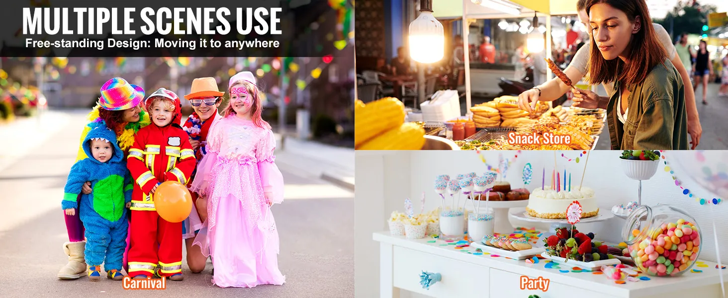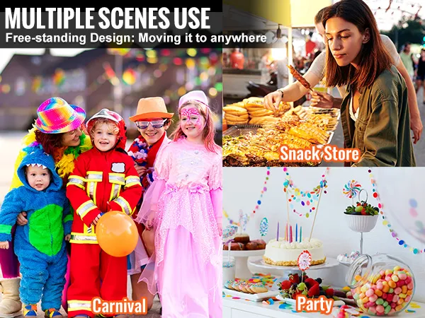 Free-standing design cotton candy maker features high mobility. Perfect for festivals, carnivals, parties, sports events, even family and social gatherings.