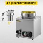 4.2 Qt Large Capacity: Pot Dimensions: Φ7.5" x 8.3" H; Overall Dimensions: 9.4" L x 9.4" W x 12.4" H. Our soup warmer commercial is equipped with a removable 4.2 Qt/4L round pot for varieties of foods at a buffet. Its large capacity meets all your food heating requirements, allowing you to serve more dishes simultaneously.