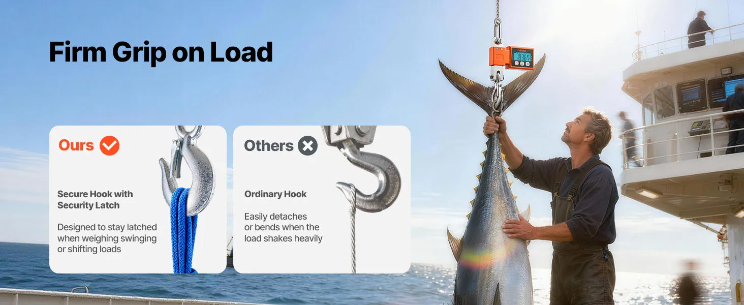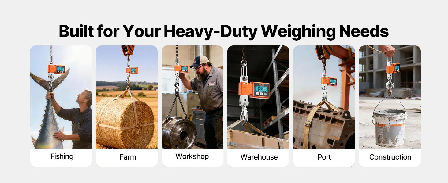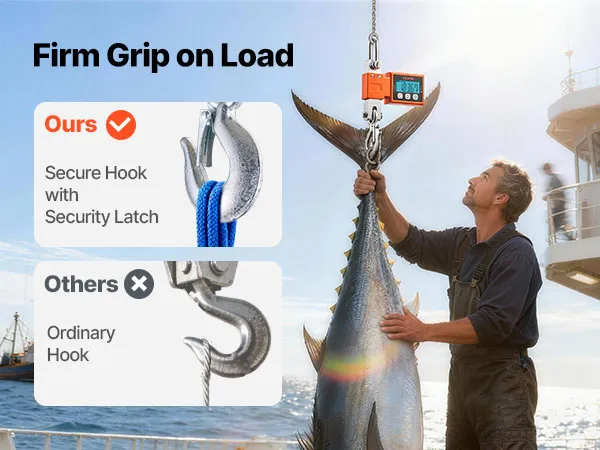 Wide Application: This hanging weight scale tackles factory materials, dock receiving, farm livestock, and daily catches with ease. The versatile design delivers reliable weighing across many professional settings