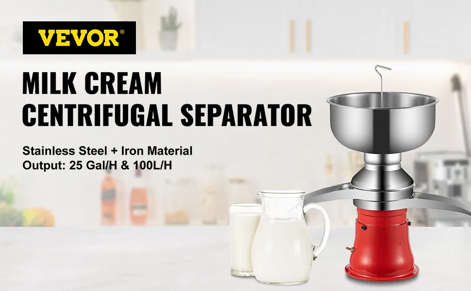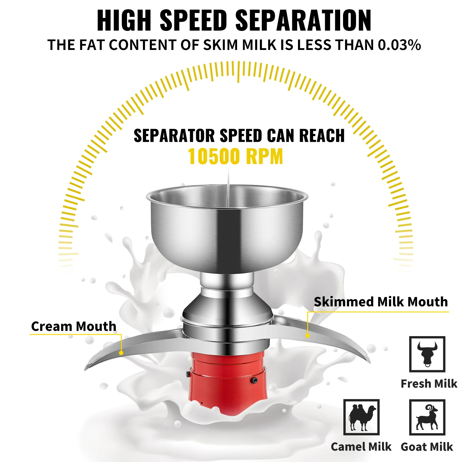 A milk separator is a centrifugal device that separates milk into cream and skimmed milk. Our product comprises food grade 304 stainless steel and durable iron, making it stable and durable. The motor is 30W, which can save power and reduce decibels. This milk skimmer machine is also effortless to clean, and you'd better keep the device dry after use. It is ideal for home and commercial use.