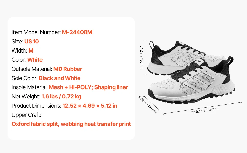 VEVOR Cross Training Shoes, M Width Sneakers US Size 10, Wide Toe Box Shoes with Arch Support & Adjustable Lace-up, Training Shoes for Running, Gymnastics, Dog Walking, and Weightlifting (White)