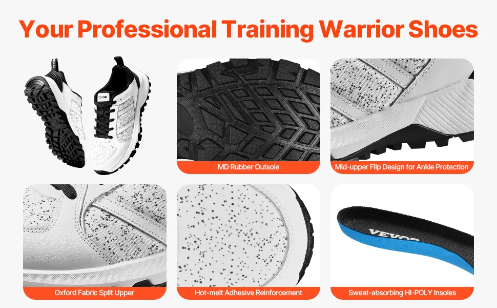 Premium Quality: The leather and Oxford fabric two-layer upper is breathable and lightweight, tested for durability. Mesh reinforcement and heat-pressed protection on high-wear areas ensure it maintains shape after washing. Stays like new with long-term use, supporting your training. TIPS: Clean regularly, avoid soaking, direct sunlight, or tumble drying.