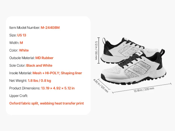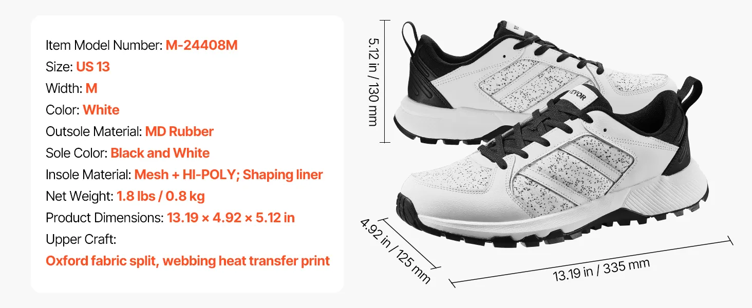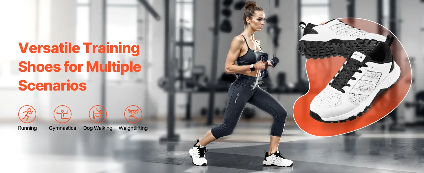 VEVOR Cross Training Shoes, M Width Sneakers US Size 13, Wide Toe Box Shoes with Arch Support & Adjustable Lace-up, Training Shoes for Running, Gymnastics, Dog Walking, and Weightlifting (White)