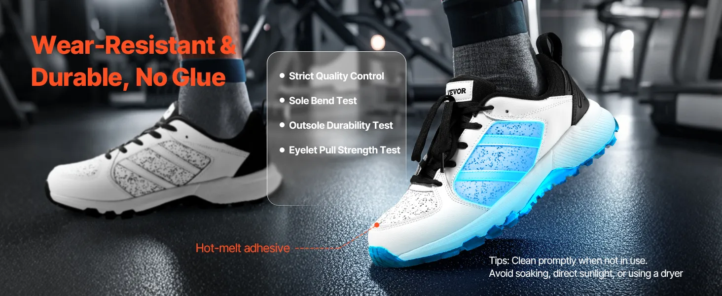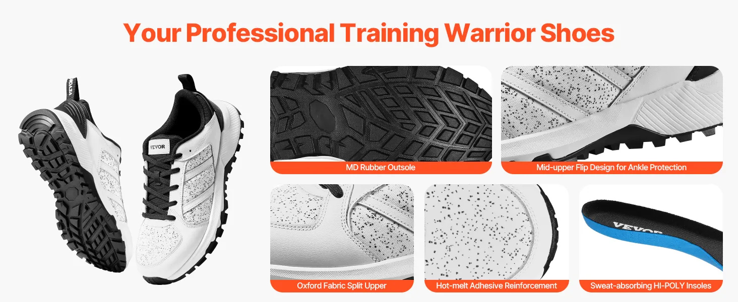 Premium Quality: The leather and Oxford fabric two-layer upper is breathable and lightweight, tested for durability. Mesh reinforcement and heat-pressed protection on high-wear areas ensure it maintains shape after washing. Stays like new with long-term use, supporting your training. TIPS: Clean regularly, avoid soaking, direct sunlight, or tumble drying.