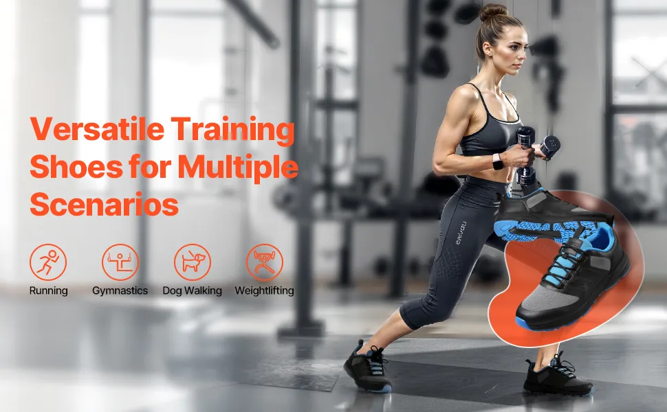 Lightweight Comfort: The insole of the cross training shoe is sweat-absorbing, breathable, and helps maintain freshness. With a widened forefoot and adjustable laces, it suits various training types, keeping your feet comfortable for both strength and cardio exercises, letting you enjoy your workout.