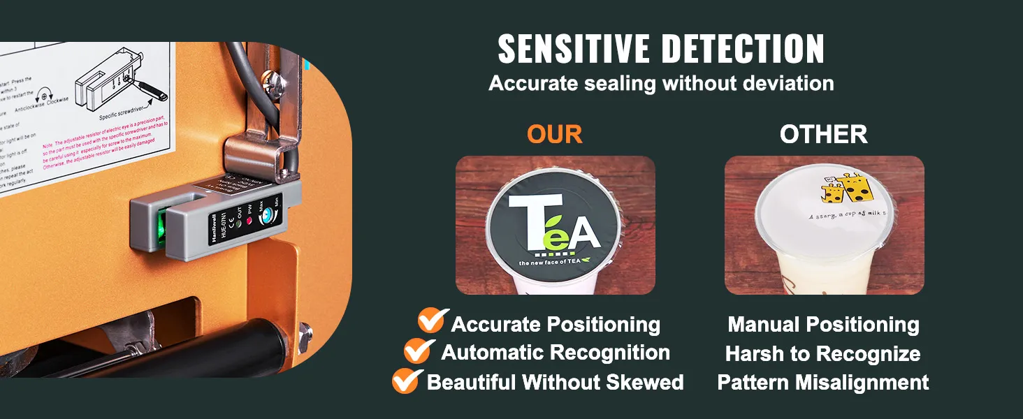 Say goodbye to wonky seals! Our automatic cup sealing machine uses smart electronic eye technology to make sure every seal is spot on, without any manual guesswork. It's all about that neat, professional finish.