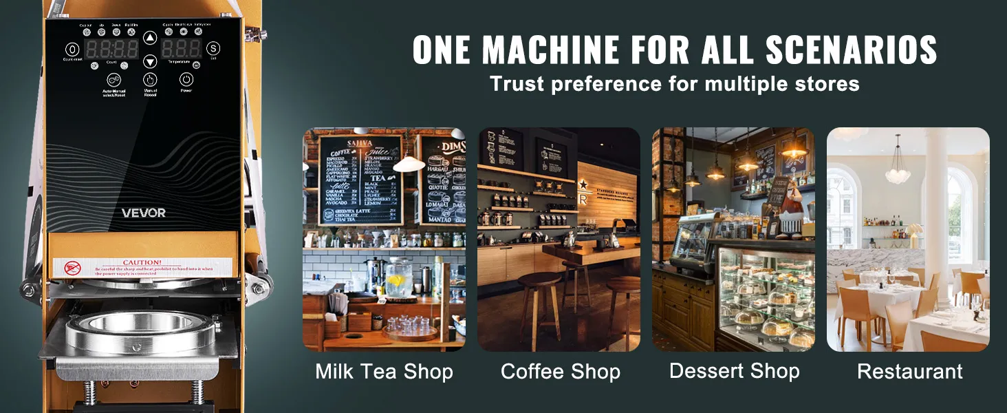 Our fully automatic boba cup sealer machine is a multitasking champ. Whether you're running a restaurant, milk tea shop, cafe, dessert shop, or snack bar, it's got you covered. It's truly your NO.1 choice.