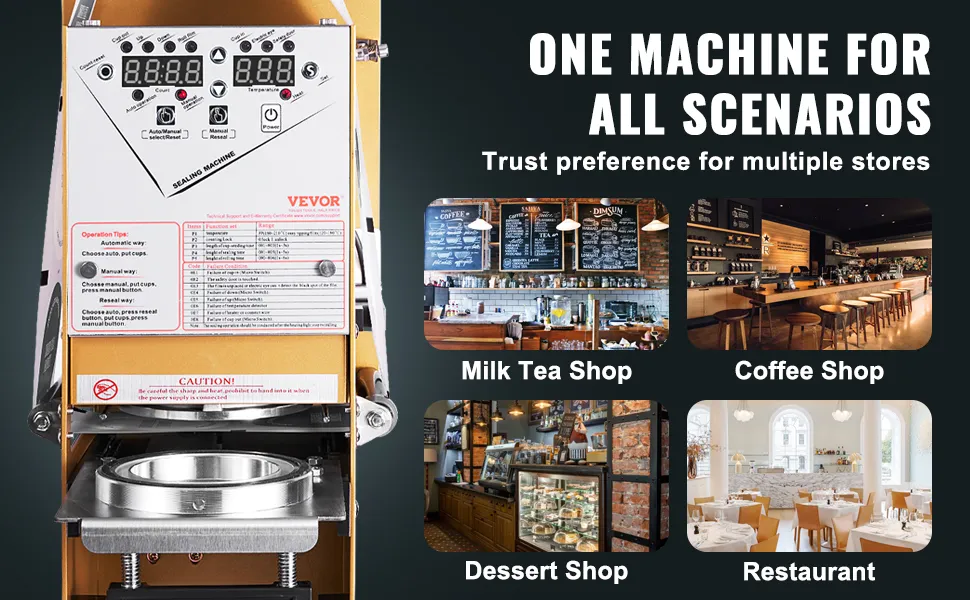 Our fully automatic boba cup sealer machine is a multitasking champ. Whether you're running a restaurant, milk tea shop, cafe, dessert shop, or snack bar, it's got you covered. It's truly your NO.1 choice.