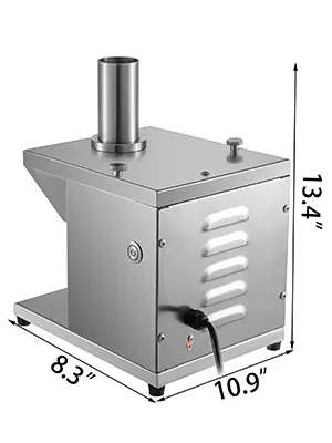 【EASY TO OPERATE】- Placing the tray on the base, press the on/off button, insert the sausage to the feed funnel, then you can get the sliced sausage efficient and fast. The 300-watt motor ensures a high rotating speed of blades.