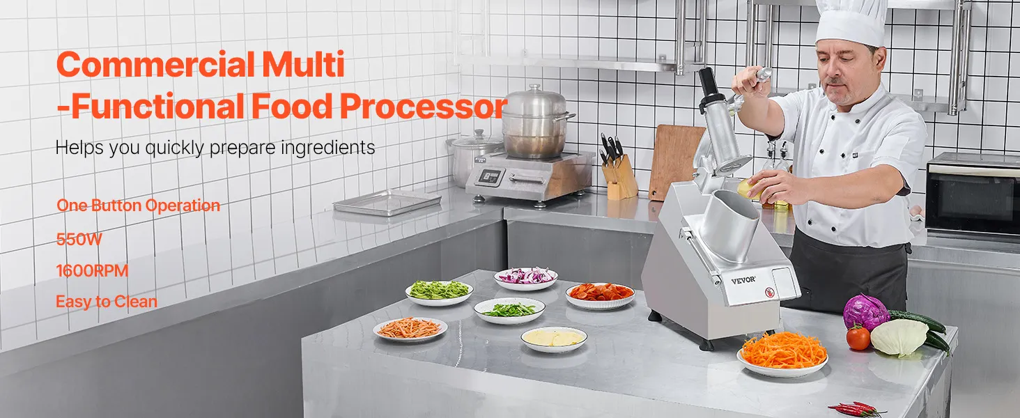 Wide Application: Compact and sleek, this food processor chopper fits easily in any kitchen space, making it ideal for use in hotels, salad bars, snack shops, and restaurant kitchens.