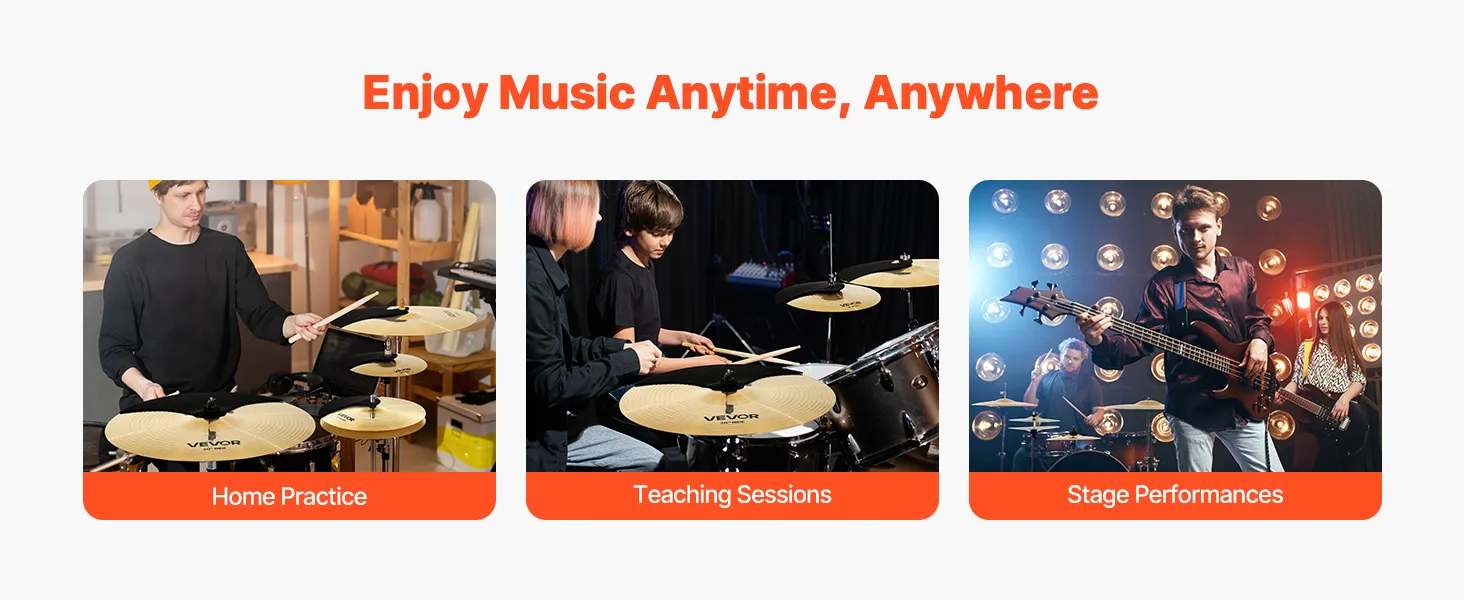 Whether you’re practicing at home, in a music school, or on stage, these drum cymbals deliver clear, vibrant tones and are ideal for any musical style. They’re the great fit for any setting or performance.