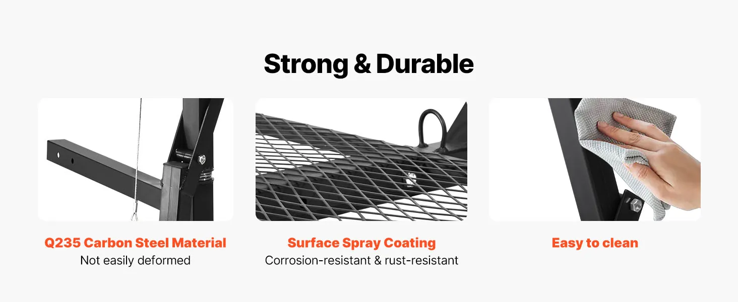 Flexible Adjustment: The support frame of the truck hitch game hoist rotates 360° effortlessly, allowing one person to place items on the frame without moving the truck
