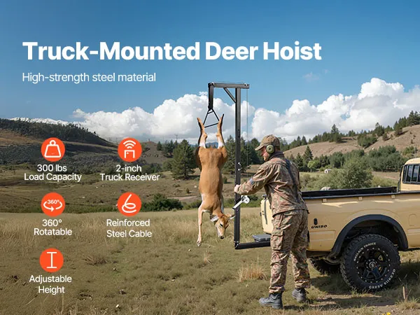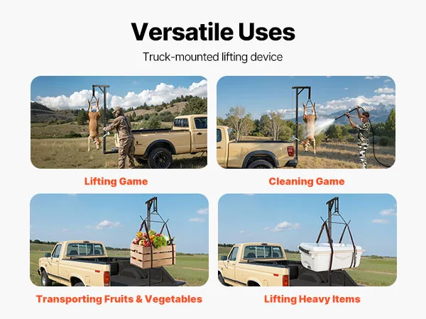 • Versatile Use: Our hunting game hoist is equipped with a 2-inch truck hitch, compatible with various vehicle types. Ideal for outdoor hunting, farm animal lifting, fruit/vegetable transport, or lifting heavy items outdoors