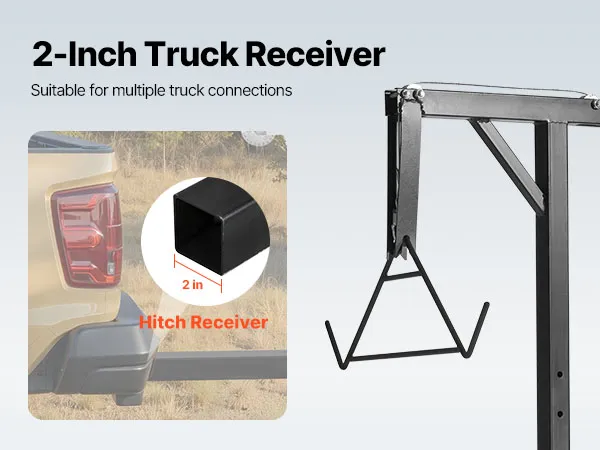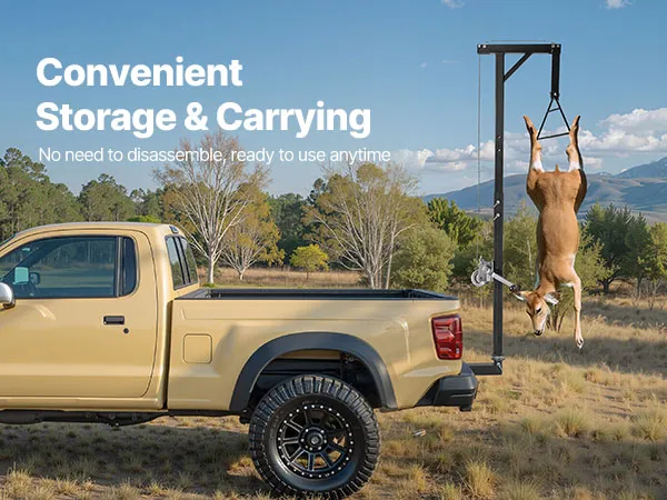 • Flexible Adjustment: The support frame of the truck hitch game hoist rotates 360° effortlessly, allowing one person to place items on the frame without moving the truck
