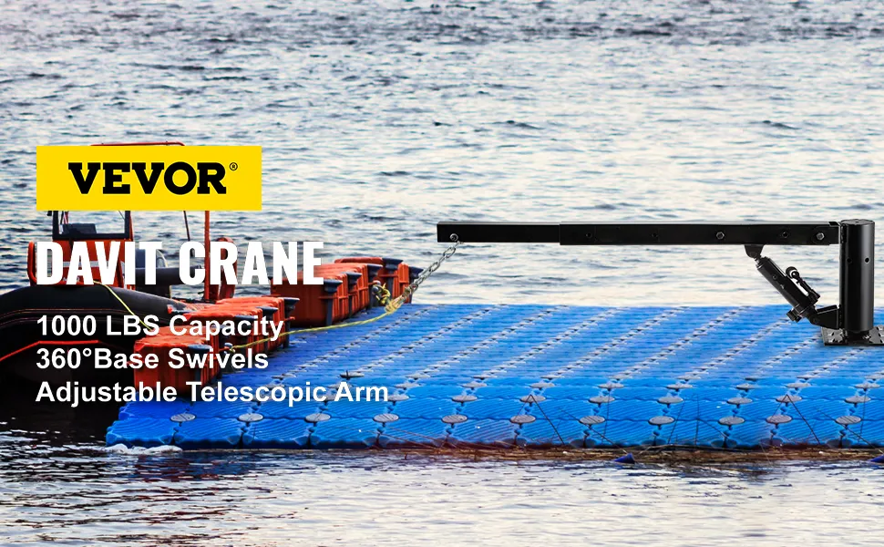According to the transport distance and the weight of items, the Davit crane's cantilever can be adjusted. For example, the telescopic boom extends from 44" to 68" to transport loads to 500 - 1000 lbs.