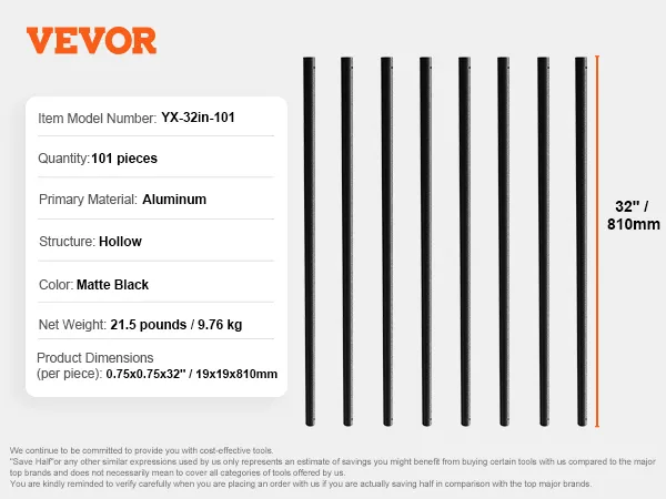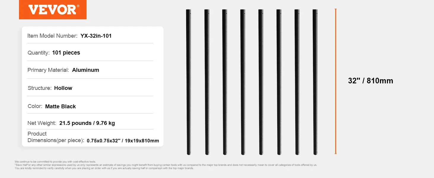 VEVOR Staircase Metal Balusters, 3/4'' Round x 32'' Long Aluminum Decorative Banister Spindles, 101 Pack Deck Baluster with Screws, Classic Hollow Deck Railing Satin Black Powder Coated for Porch VEVOR Staircase Metal Balusters, 3/4'' Round x 32'' Long Aluminum Decorative Banister Spindles, 101 Pack Deck Baluster with Screws, Classic Hollow Deck Railing Satin Black Powder Coated for Porch