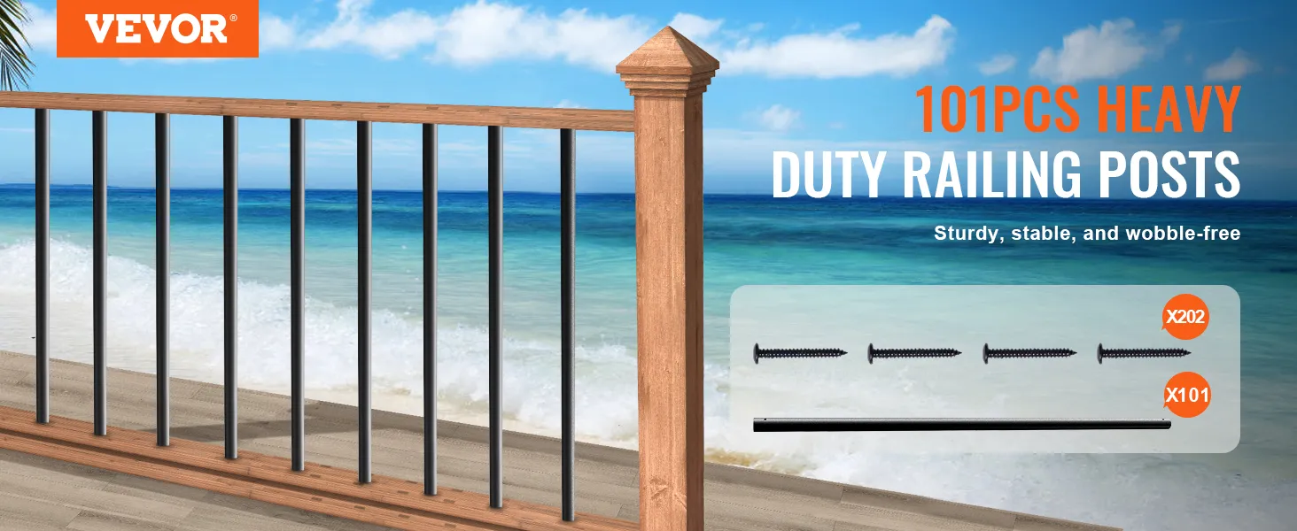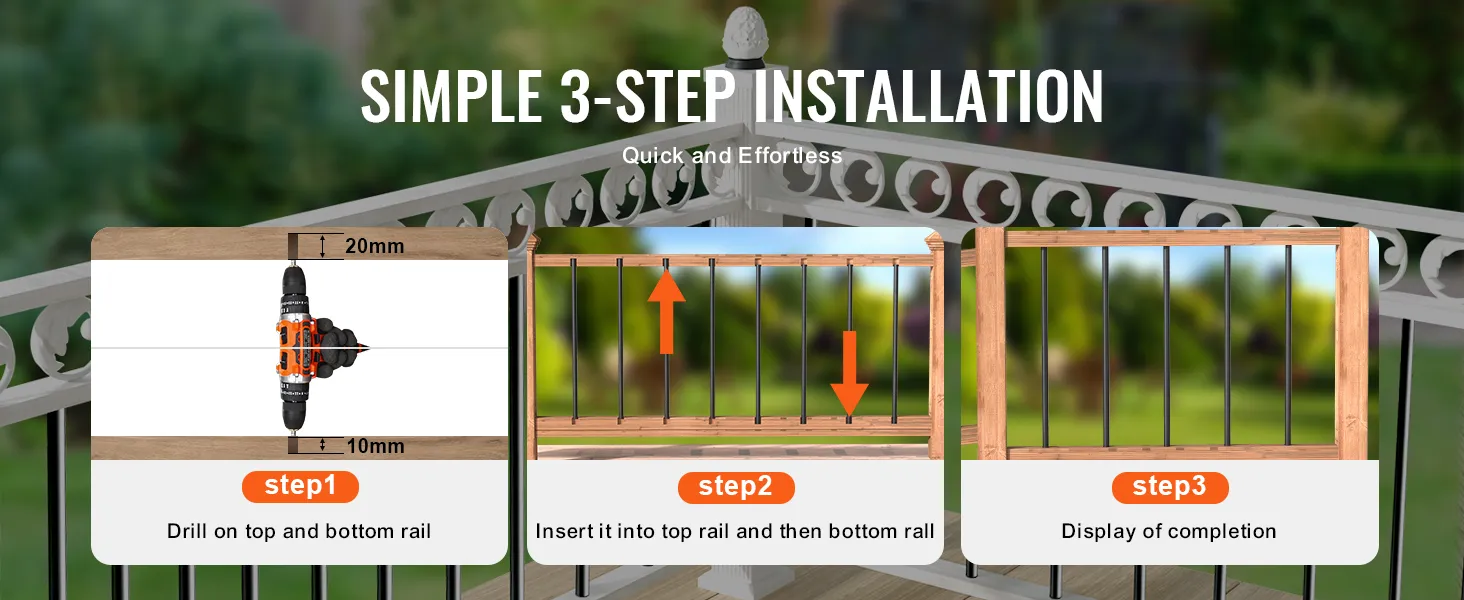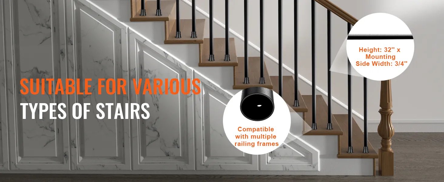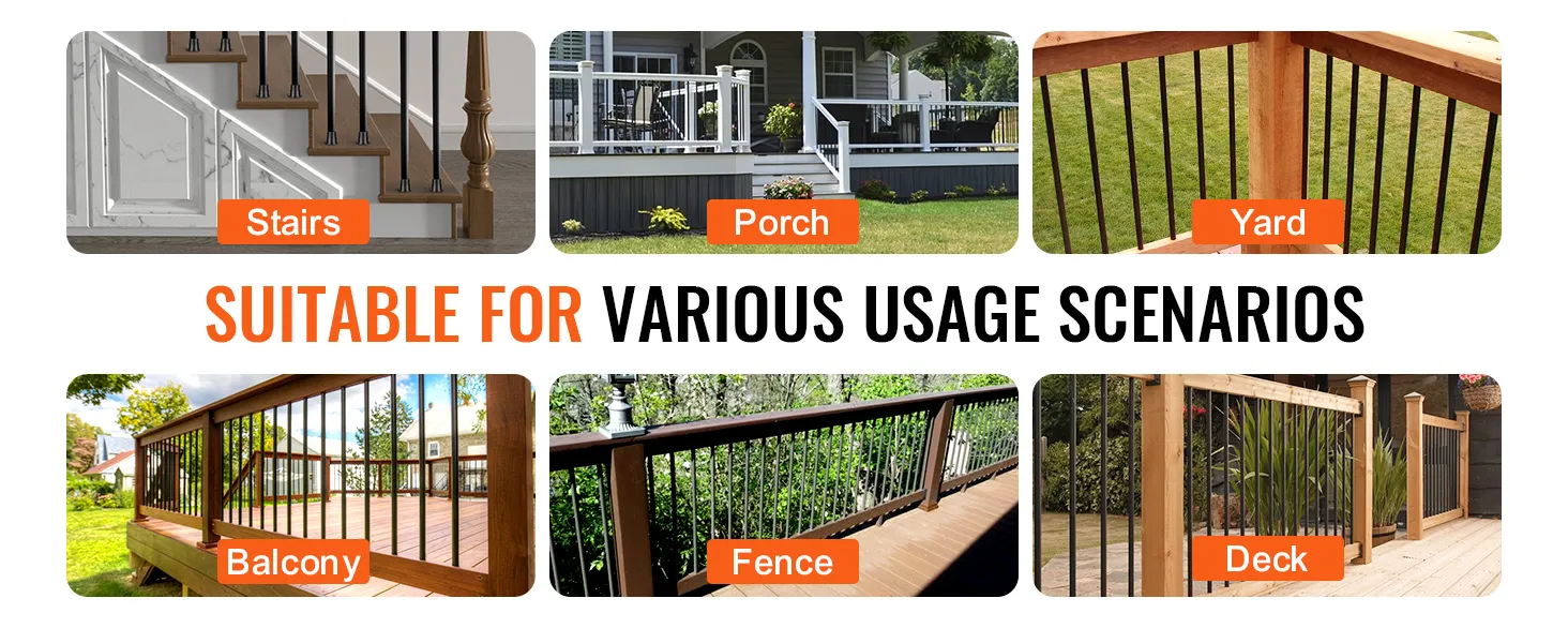 The installation process of VEVOR staircase metal balusters is very straightforward. These deck balusters come with screws, making the installation procedure super easy. The screws are designed to fit perfectly with the baffles. This simplifies the process of attaching the balusters to the rails without any special tools for installation. You don't need any specific tools at all. They are strong enough to hold the balusters securely. The simplified installation saves you time and effort. Also, it makes it easier for DIY enthusiasts to install the balusters themselves.