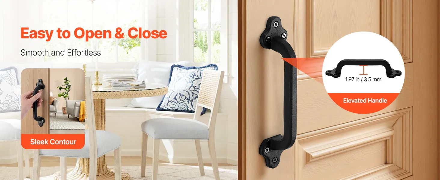 The barn door handle is ideal for fence gates, barn doors, tool sheds, garden gates, and courtyard doors, adapting effortlessly to various door types.
