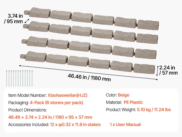 • Realistic Stone Texture: Our stone landscape edgings feature a lifelike stone texture design. The raised surface patterns add depth and dimension to your outdoor spaces. Each piece measures 1180x95x57mm/46.46x3.74x2.24in, making them perfect for enhancing pool edges, garden beds, and pathways. These lawn edging provide a clean, refined look for both large and small spaces.