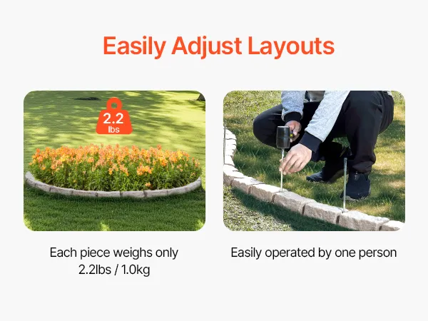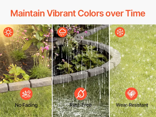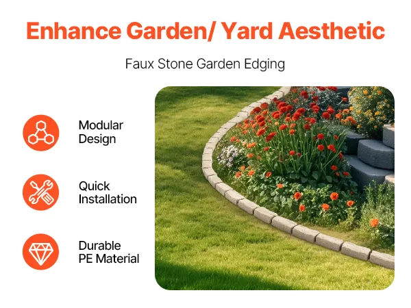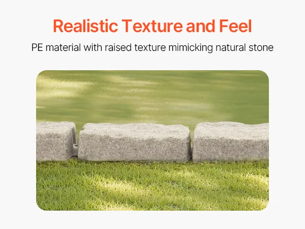 This stone landscape edging features a lifelike stone texture that effortlessly enhances the visual appeal of your garden, pool, pathways. The modular design allows for quick installation. Made from quality PE, this lawn edging is fade-resistant, rust-resistant, lightweight, and long-lasting.