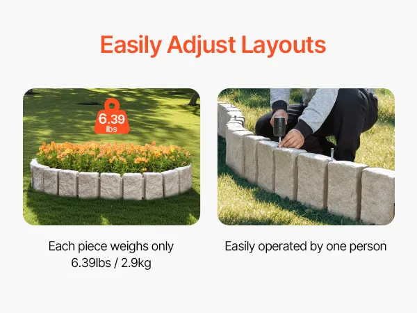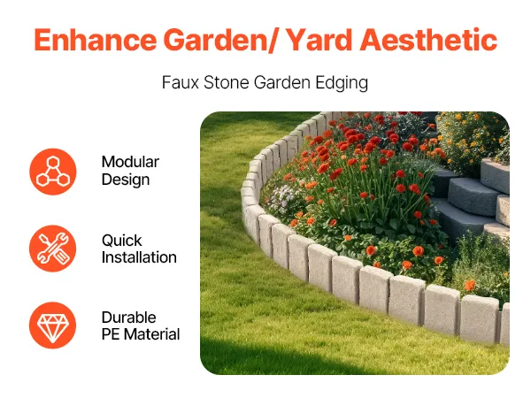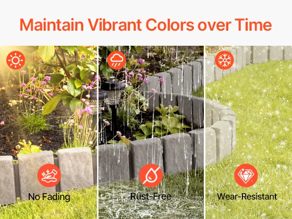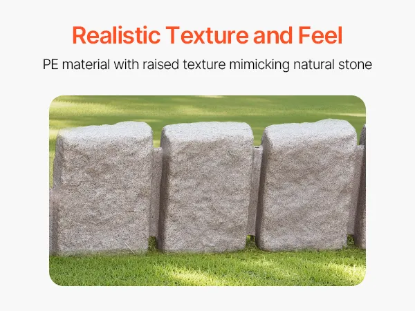 This stone landscape edging features a lifelike stone texture that effortlessly enhances the visual appeal of your garden, pool, pathways. The modular design allows for quick installation. Made from quality PE, this lawn edging is fade-resistant, rust-resistant, lightweight, and long-lasting.