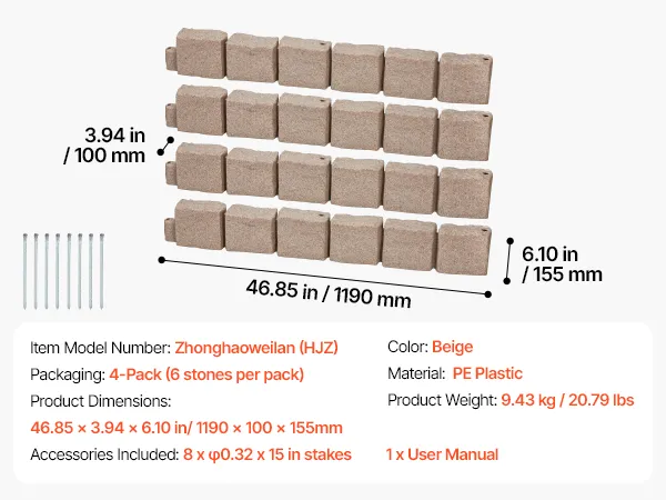 Realistic Stone Texture: Our stone landscape edgings feature a lifelike stone texture design. The raised surface patterns add depth and dimension to your outdoor spaces. Each piece measures 1190×100×155mm (46.85×3.94×6.10 in), making them perfect for enhancing pool edges, garden beds, and pathways. These lawn edging provide a clean, refined look for both large and small spaces.
