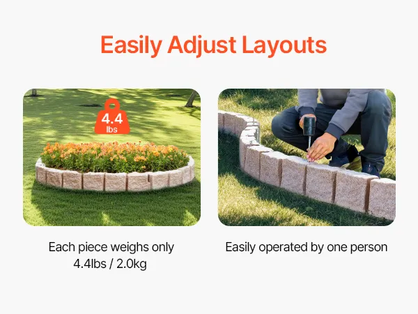 Low Maintenance: The lightweight structure ensures easy handling without compromising strength. Simply rinse with water to maintain its original appearance throughout the year. Despite its realistic stone-like appearance, each brick weighs just 2.0 kg (4.4 lbs), making them easy to move and install without heavy lifting.