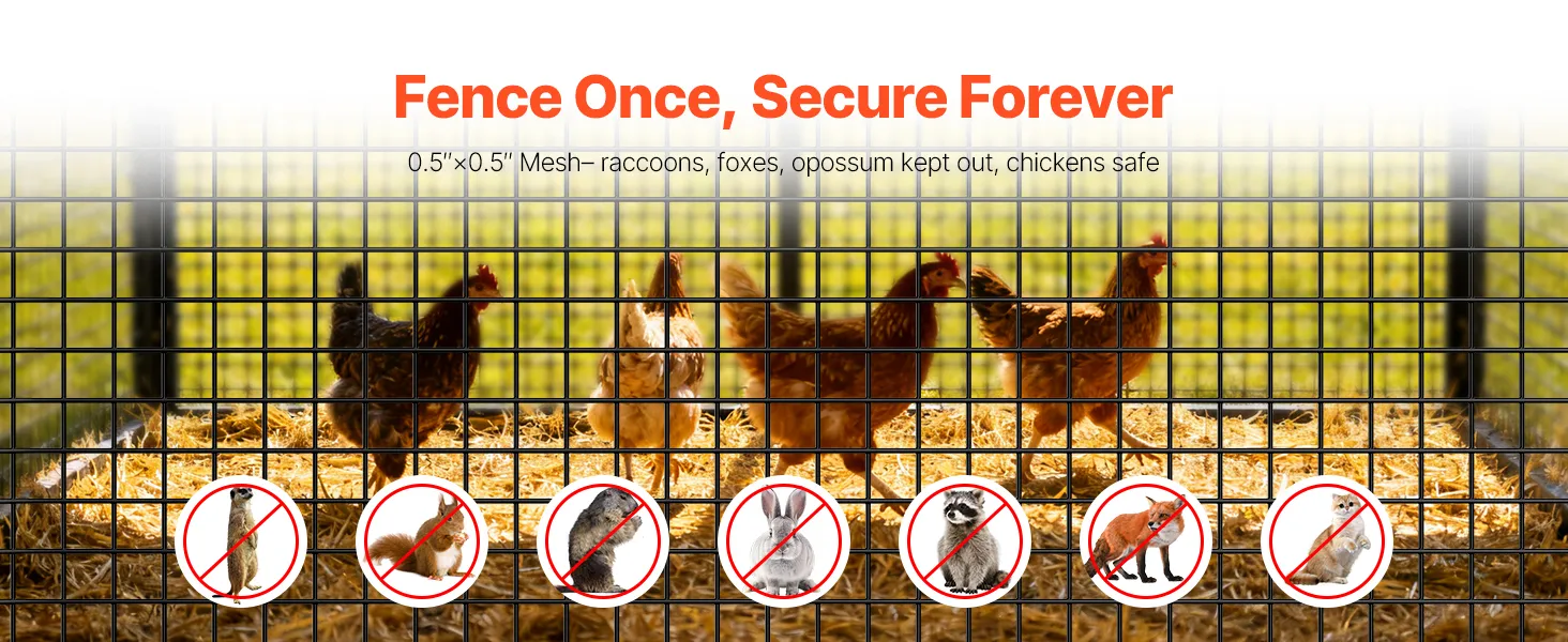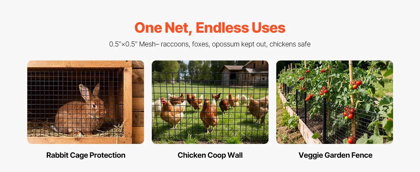 Small Animal Protection Barrier: Our hardware cloth features 0.5x0.5-inch mesh that precisely blocks rabbits, rodents, and puppies. Ideal for gardens, pet enclosures, and poultry cages. Dual-purpose: it keeps wildlife out while protecting plants and pets year-round